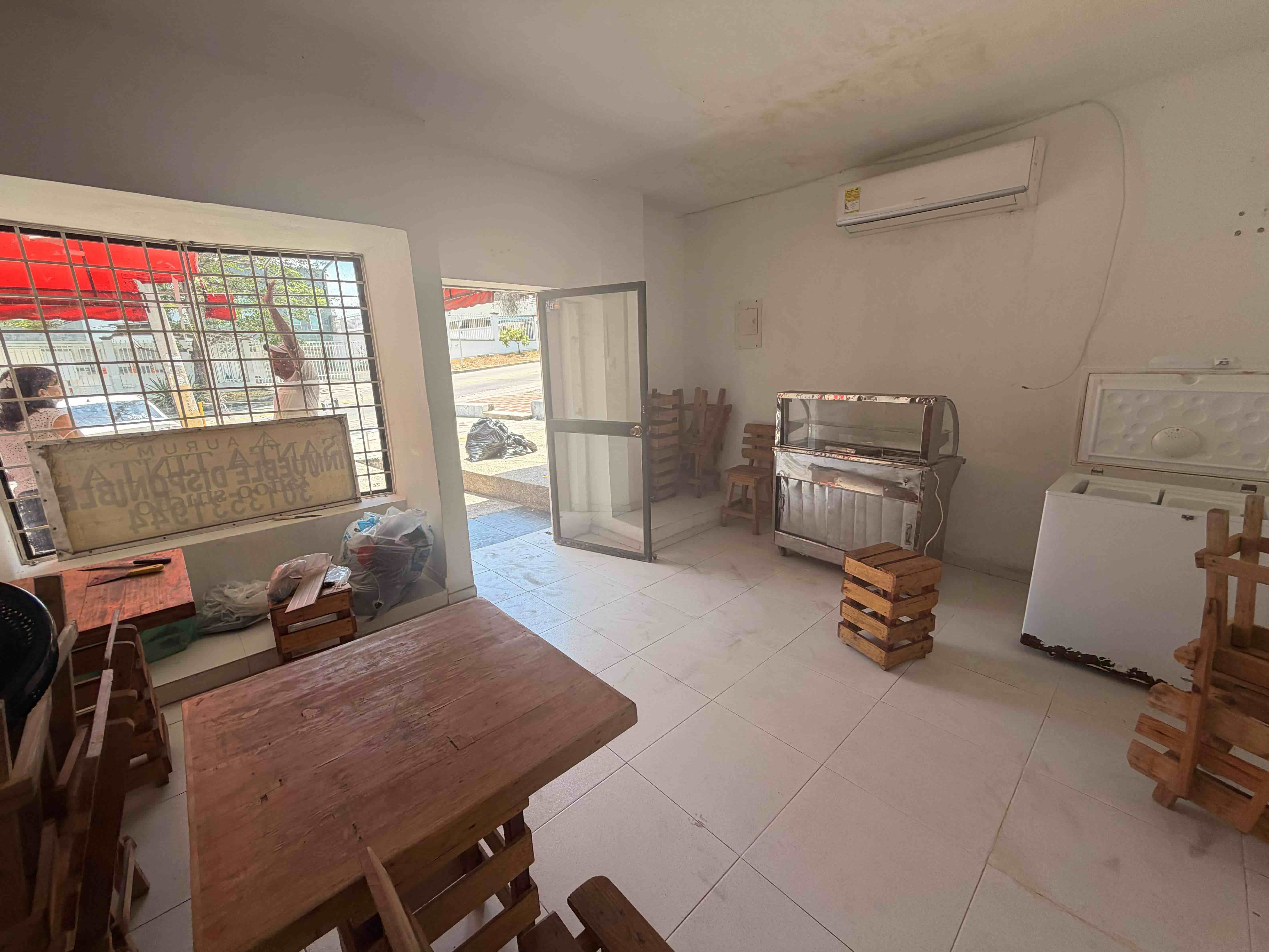 CON PISOS EN CERAMICA ,ESTUFA, PLANCHA , CAMPANA , LAVAPLATOS INDUSTRIAL , MEZON DE ALUMINIO , VITRINA EXIBIDORA , CONGELADOR , SILLAS EN MADERA . CONSTA DE UN BAÑO INTERNO Y TERRAZA .